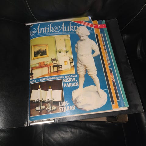 Myydään kuvassa näkyvät vanhat Antik Auktion antiikki lehdet vuosien 1986-1996 väliltä. Lehtiä yhteensä 27kpl. Tarjoa!