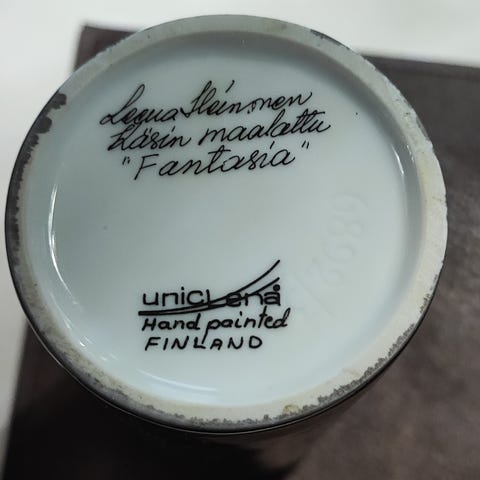 Myydään Leena Heinosen käsin maalaama maljakko " Puketti "