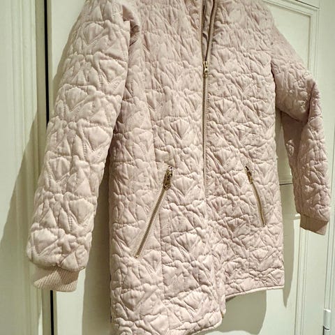 Hyväkuntoinen, musta takki. Päällinen ja vuori 100% polyesteria. Irrotettava huppu. Edessä ja hihoissa taskut. Taskuissa vetoketjut. Pituus 58. Kai-kai 46. Hartia 36.