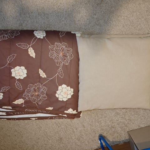 Punainen sängynpeite. Koko 150 x 200 cm. Kunnoltaan siisti. Ohut tikkikangas, kevyt vanu välissä, voi hyödyntää myös ompelutöissä, esim. istuinten päällystäminen, puusohvan kansi tms.