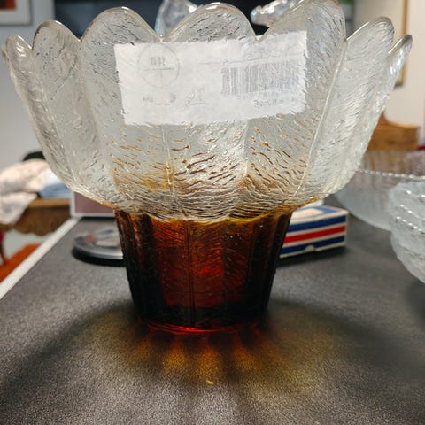 Myydään hieno iso Humppilan lasin valmistama lasimalja. Suunnittelija Pertti Santalahti.
