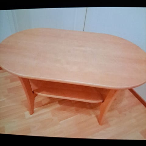 Sohvapöytä, pöydän päässä pyörittettävä laatikko. Mitat voi kysyä 80/tarjous, muutama kuluma. Muuton tieltä pois