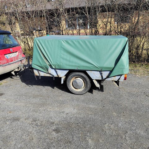 C!-luokan kevy tavarankuljetusperävaunu, -98 293x156x68 cm. Etuylitys 110, takaylitys 100 cm, pohjalevy 200x115cm, pyörien kiinnityspisteiden keskipisteiden välinen etäisyys n. 71 cm. Omamassa 132, max 750 kg, akseliväli 193 cm. Toin Saksasta n. 10 v sitten ja päällä oli silloin Hondan GW 1800 tai 1500. Muutama vuosi sitten kärryyn vaihdettiin uusi pohjalevy. Kärry on saksalaista laatua ja siinä on hyvin kiinnityspisteitä. Sopivan profiilin avulla kärryyn voi asentaa myös sivulaidat. Kärryä on säilytetty enimmäkseen sisätiloissa ja tuli myyntiin tilantpuutteen ja olemattoman käytön takia. P. 0400-620011.
