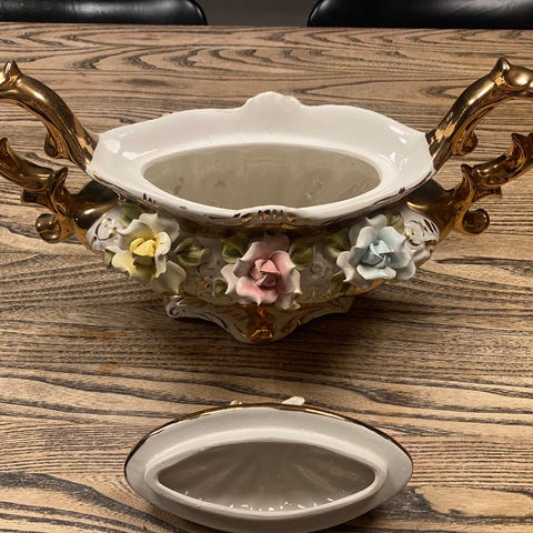 Naisfiguuri on Capodimonte posliinia, joka on hieno ja laadukas napolilainen posliini. Käsinmaalattu. Erinomainen kunto, kuin uusi. Oli vain lasikaapissa Mitat: korkeus 19 cm, pohja 7x12 cm. Savuton ja eläimetön koti. Postitus onnistuu.