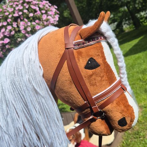 Veikeä keppari jolla "avoin" suu eli voi esim laittaa kuolaimet suuhun. Pitkä harja. Toisella puolella pieni jälki, ehkä liimaa. Ilman keppiä.