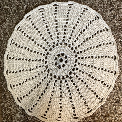 kuvanmukainen pyöreä matto virkattu ontelokuteesta Koko 115cm. Uusi.