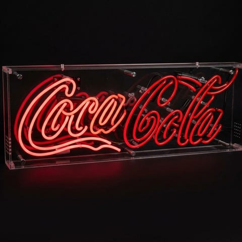 Kuvan mukainen valomainos, molemmilla puolilla valkoinen teksti. Sisältää kaksi toimivaa loisteputkea.