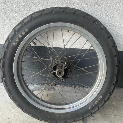 21" enduro vanne myynissä. Hyvässä kunnossa. Pitäisi sopia useimpiin mopoihin ja moottoripyöriin, joissa on 15 mm akseli. Laakerit ja jarrulevy ok. Pitäisi sopia suoraan derbi senda mopoihin.