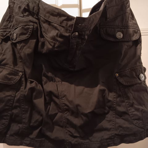 Joustavaa kangasta oleva hame. Vyötärö 75cm. Venytettynä kuminauha 92cm. Hameen pituus 56cm. Materiaali 95% polyester ja 5% elastan