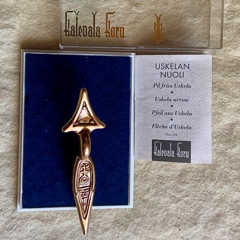 Kalevalakoru rintaan tai kaulukseen. Hopea. Käyttämätön.