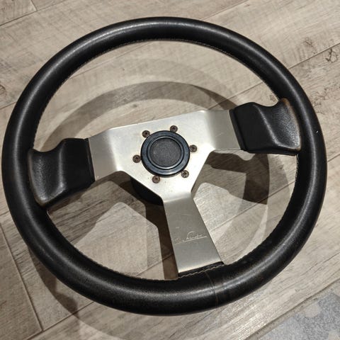 Vähän pyöritelty ladan alkuperäinen ratti. Kyseinen ruori pyöri hetken v.1994 kunnes ralliratti korvasi. Siisti ja ehjä.