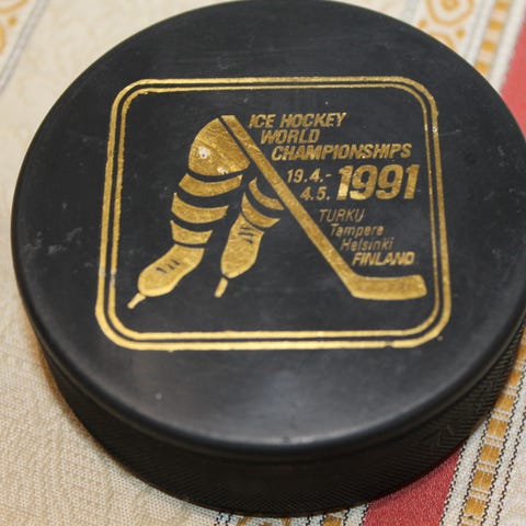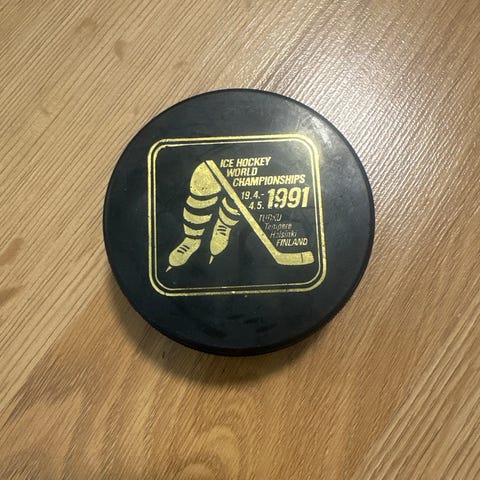 Jääkiekon MM 1991 kiekko + pääsylippuja