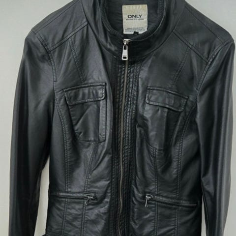 Tyylikäs Biker-tyylinen nahkatakki koko S.
