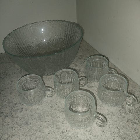 Riihimäen lasin boolimalja & 4 lasia