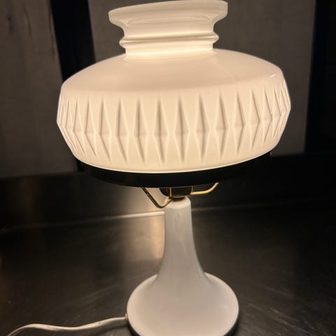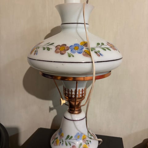 Isokantainen lamppu, katkaisija lampun jalassa.