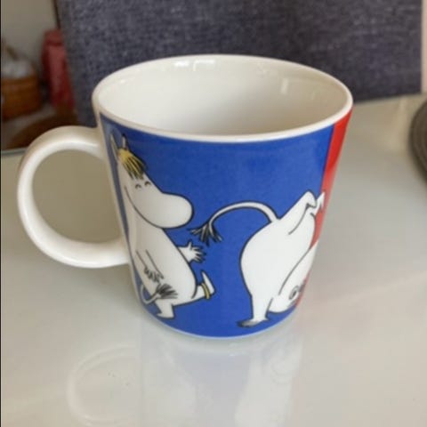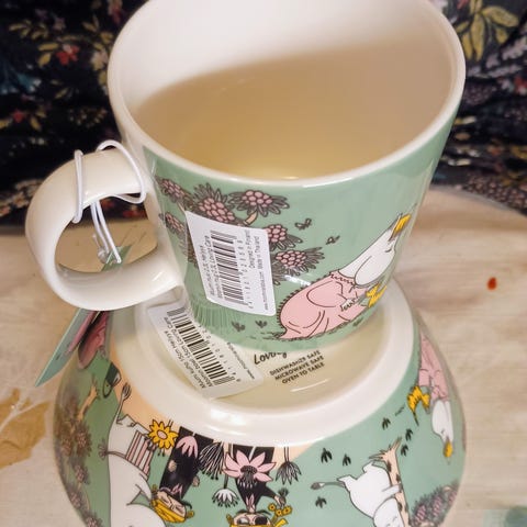 *1 muumimamma ja marjat muki, hinta 20e, hyvä