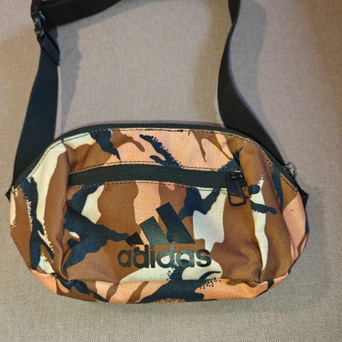 Uusi, iloisen värinen Adidaksen vyölaukku etiketteineen.