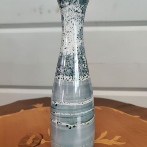 Leena Heinonen, käsin maalattu design-maljakko. Maljakon halkaisija 15cm.