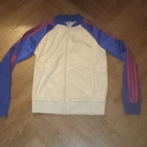 ADIDAS kevät-takki. Koko S, pituus niskasta helmaan n.70cm, hihan pituus n.60cm ja vetskari kiinni leveys n.40cm. Vetskarin kelkasta irronnut metalli-lippa(kts. kuva), muuten takki on siisti, ehjä ja hyvässä kuosissa.