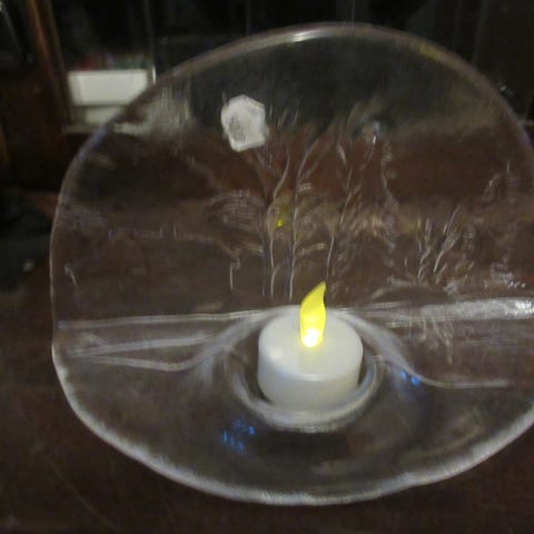 Myydään lasinen Kauko Mäkisen suunnittelema ripustettava Romantica kynttilä teline . Muurlan lasi 1991. Korkeus 16 cm, leveys 25 cm, syvyys 8 cm. Signeeraus pohjassa. Postitus onnistuu.