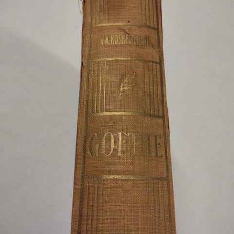 Hyväkuntoinen kovakantinen kirja ilman kansilehtiä.