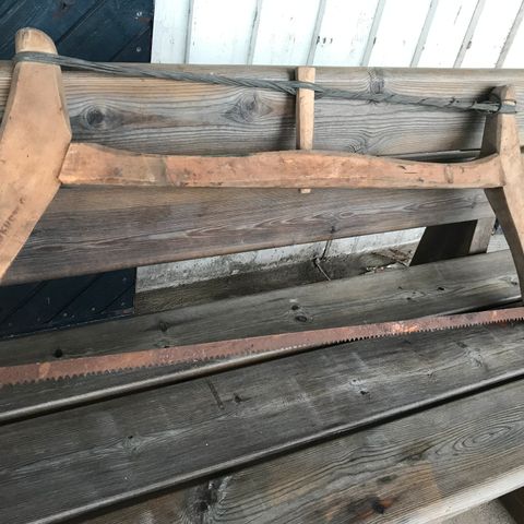Ehjä ja kunnoltaan hyvä pokasaha, josta vain terä ja kiristinjänne puuttuvat. Terän kiinnityspisteiden väli on n.90 cm. Saa tarjota!