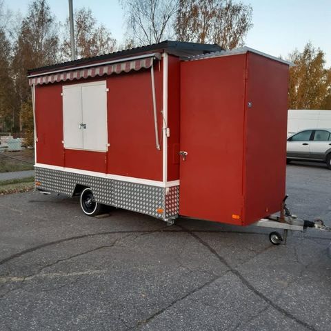 Varustus; jääkaappi, juomakaappi, rasvakeitin ja lämpöhaudin GN-astioineen. Lisäksi popup-teltta reunuksineen, 2 pöytää tuolineen. Hinnassa hiven neuvotteluvaraa.