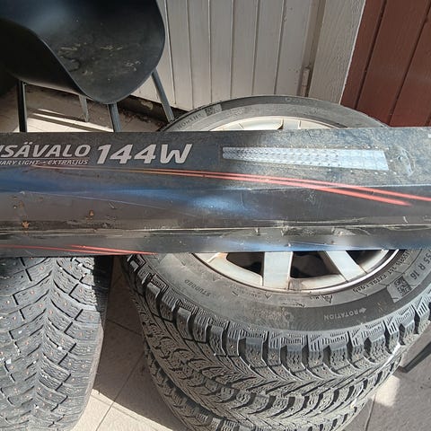 Enpä tiedä mistä autosta...tämäkin löytyi isäni autotallista...Leveys noin 11,5 cm ja keskeltä noin 4 cm. Hella -merkkinen.