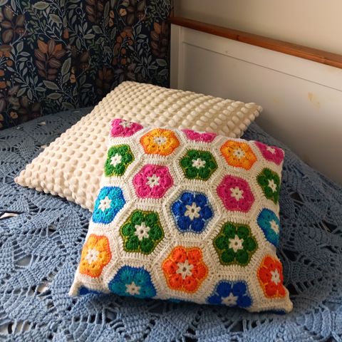 Vähän käytetty (vanha) Virkattu Sohvatyynyn Päällinen.