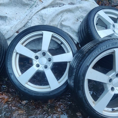 Audi A6 vm. 2019 olleet aluvanteet 18" ja 3mm kulutuspintaa olevat Contin-kitkarenkaat. Vanteet siistit ja suorat ei kanttariosumia. Käy myös allroad-malliin ja muihin Audi malleihin. Renkaat 235/55/18.