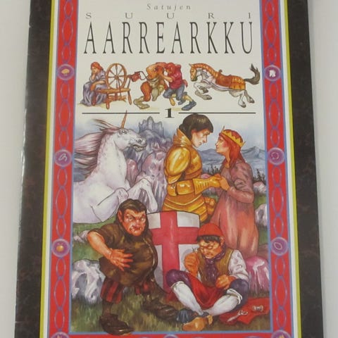 Satujen suuri aarrearkku nimiset satulehtikäiset uutta lukijaa vailla. Lehdillä suuri koko, n.26x38,8cm. Sisältä siistit, kansissa jo ajan tuomaa patinaa.