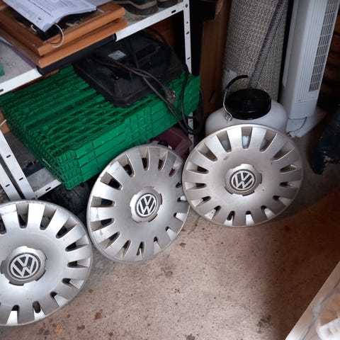 16" VW, Hyundai, ja Volvo pölykapselisarjat, alkuperäiset ja oikein hyväkuntoiset, 4 kpl / sarja, hp. 40,- / sarja