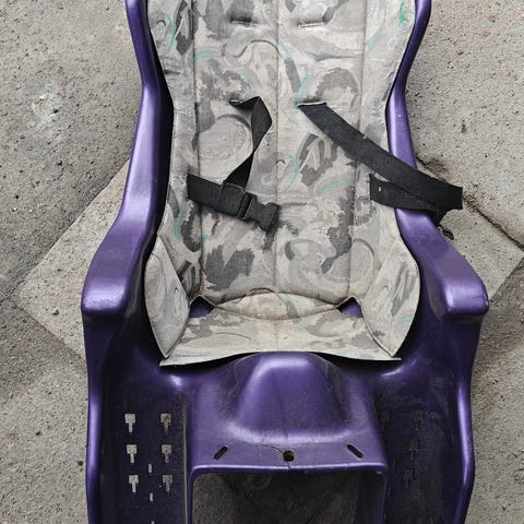 Siinä on polkupyörän istuimen kiinnitys osia, erilaisia turvalukitteita, turvakaaria, turvaistuimen heilunnan estäjiä, jotain adaptereita.
