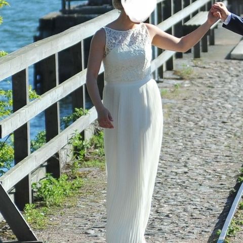 Myydään Helsingin Stockmannilta v. 2011 ostettu Agnes-merkkinen hääpuku, joka alunperin ollut kokoa 38, mutta pienennetty ompelijalla kokoon 34. Takana piilovetoketju. Helmassa monta kerrosta kangasta, joista päällimmäinen ohutta ja ilmava. Ollut päällä 162cm pitkällä morsiamella, jolla noin 5cm korot.