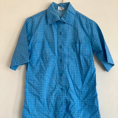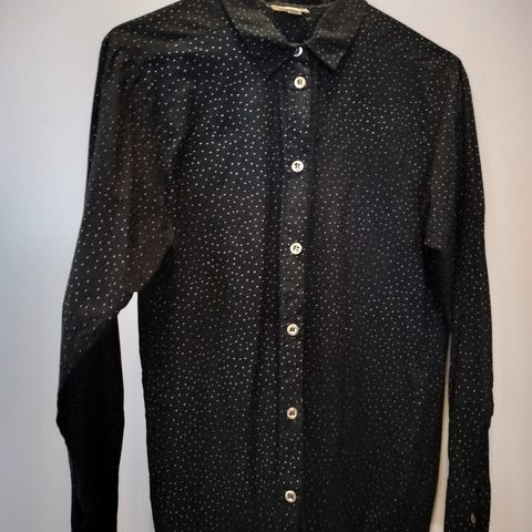 Marimekon vintage paitapusero 70-luvulta ( Koko XS ) Kainalo-kainalo 48 cm, niska-helma 69 cm ja hihan pituus olkapäältä 51 cm. Ei materiaalitietoja, mutta vaikuttaa oleva puuvillaa. Molemmille sivuille on itse tehty halkiot ( 18 cm ). Puseron etupuolella on kaksi tahraa ( molemmat 0,4 x 0,5 cm ). Muuten pusero on todella hyvässä kunnossa.
