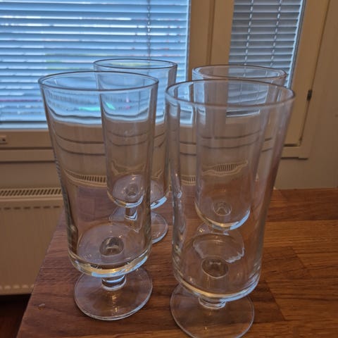 Kaksi kappaletta drinkki-/mehulaseja, koko n. 2,5 dl piripintaan, 4 cl:n mittaviiva. Lasin korkeus n. 15 cm, pohjan ulkomitan halkaisija n. 6 cm. Tukevasti pysyvät pystyssä paksumman pohjan ansiosta. Laseissa olevassa kuvioviivassa lukee "SAFARI" kahdesti. Ilmeisesti näitä on joskus ollut Ruotsin laivoilla Safari-juomien kylkiäisenä. Hinta yhteensä 6 euroa. Nouto tai postitus; myös ToriDiili - lähetys käy.