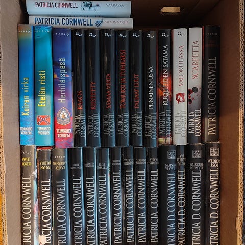 Patricia Cornwellin kaikki ennen vuotta 2019 suomeksi käännetyt teokset sisältävä kirjakokoelma.