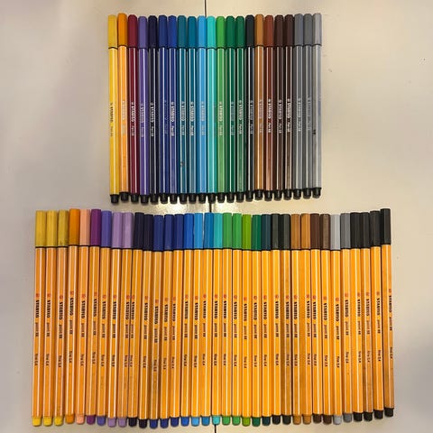 Myydään 11 Stabiloa 88 kyniä. Ne ovat tosi hyvä, Jotkut ovat uusi ja jotkut ovat käytetty. Vain 88/22:lla on "ghost", mutta muste on hyvä.