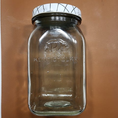 Valmistaja Riihimäen lasi, tilavuus 3 litraa, kunto hyvä. Kansi ei ole alkuperäinen.