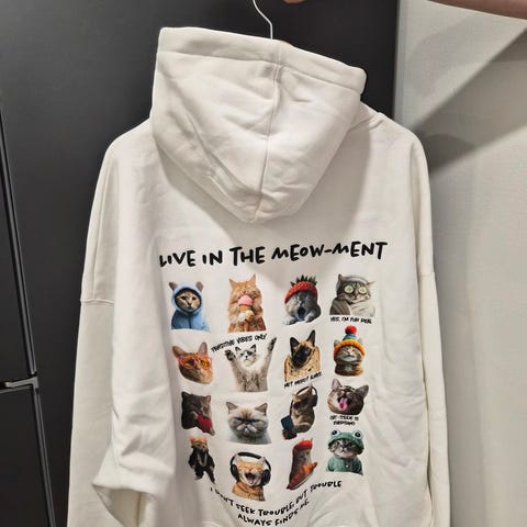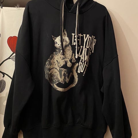 Huppari on lyhyttä mallia. Rinnanympärys on 2×60cm. Kissanystävälle ihana pehmoinen ja lämmin huppari. Hupussa on korvat. Postikulut ostajalle. Myös toridiili käy.