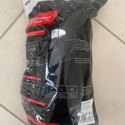 Kuva 2: Käytetyt aikuisten Uhlsport säärisuojat. Lenkit jalan alle. Säilytetty sisätiloissa.