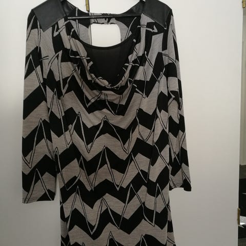 Uusi tunika pitkä paita minimekko jossa tekonahkaa edessä ja vetoketju takana. Koko M tai isompi jos haluaa että on vartalonmyötäinen.