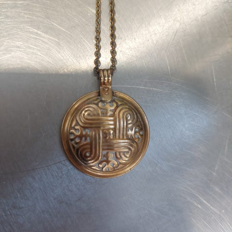 Pronssi-koru. Korkeus n. 4cm ja leveys 2,5cm.
