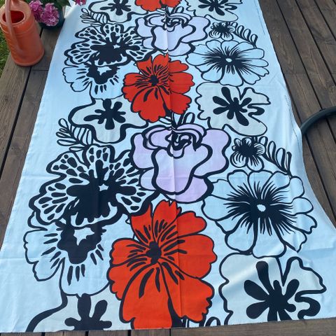 Jäänyt kaapin uumeniin aikoinaan. Upeat vahvat värit. Tästä tauluksi seinälle. 115cm pituus, pakkaleveys. 25370 Pertteli. Mmm