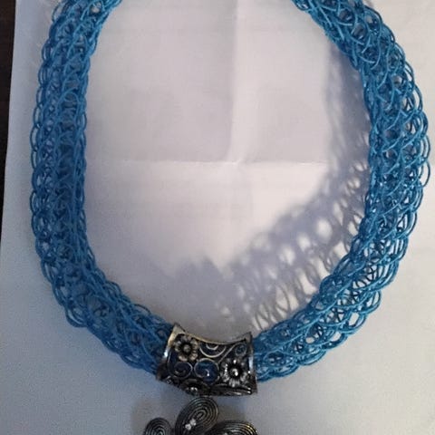 Kotimaista käsityötä: Papurino puinen kukkariipus ja nahkanauha. Uusi.