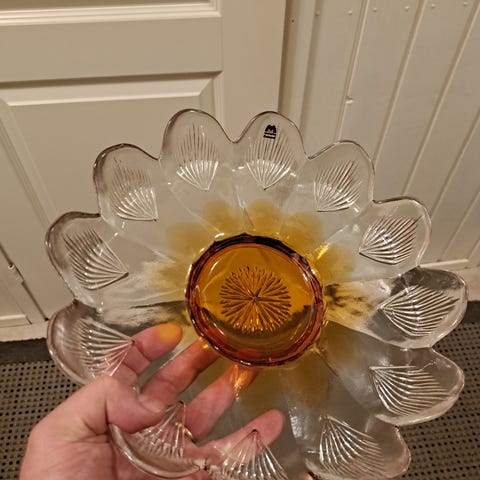 Retro ikäinen Muurlan lasiastia, kotimaista design lasia, max halk. 40cm ja korkeus 12cm, moitteeton kunto.