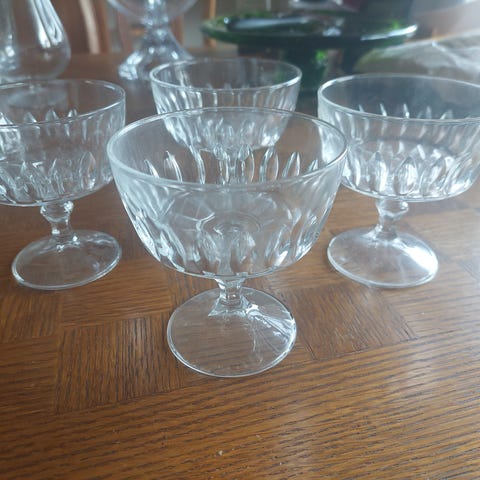 Vanhat perinteiset paksulasiset jäätelömaljat tai jälkiruokamaljat, tai vaikka coctail-lasit, smoothielasit.