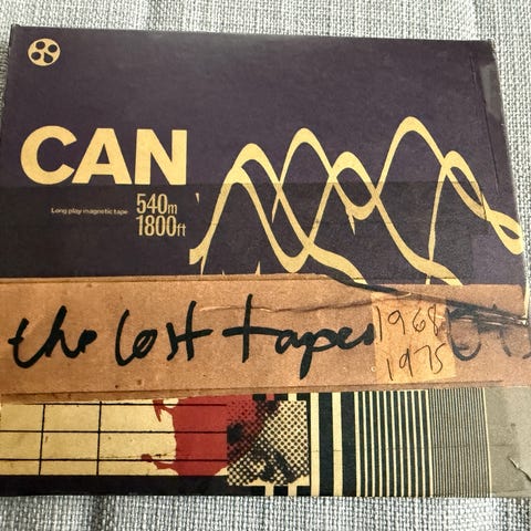 Myytävänä legendaarisen CAN-yhtyeen The Lost Tapes viiden LP-levyn boksi, jossa levyjen lisäksi mukana paksu vihkonen sekä juliste.