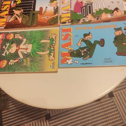 Myydään kuvan pehmeäkantinen Masi Rentoa elämää, sarjakuvakirja. Kuvat ovat mustavalkoisia. Ehjä ja siisti.