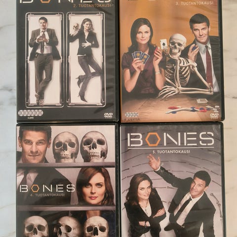 Kertaalleen läpikatsotut Bones tuotantokaudet 3 ja 4. Yhteishintaan 5e. Mahdolliset postituskulut ostajalle. Kulkeutuu arkisin Masku-Kaarina akselilla